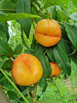 油蟠7-7桃:7月(yuè)中旬成熟,果實扁形,果面光(guāng)潔,單果250克以上(shàng),含糖17%、縫合線完整、無頂疤、斑點、果繡,果肉金(jīn)黃(huáng)色,果實成熟後散發出濃郁香味,肉質細密、硬、脆、味甘甜,可(kě)溶性固形物(wù)含量15%-18%,耐運輸、貨架期長(cháng).